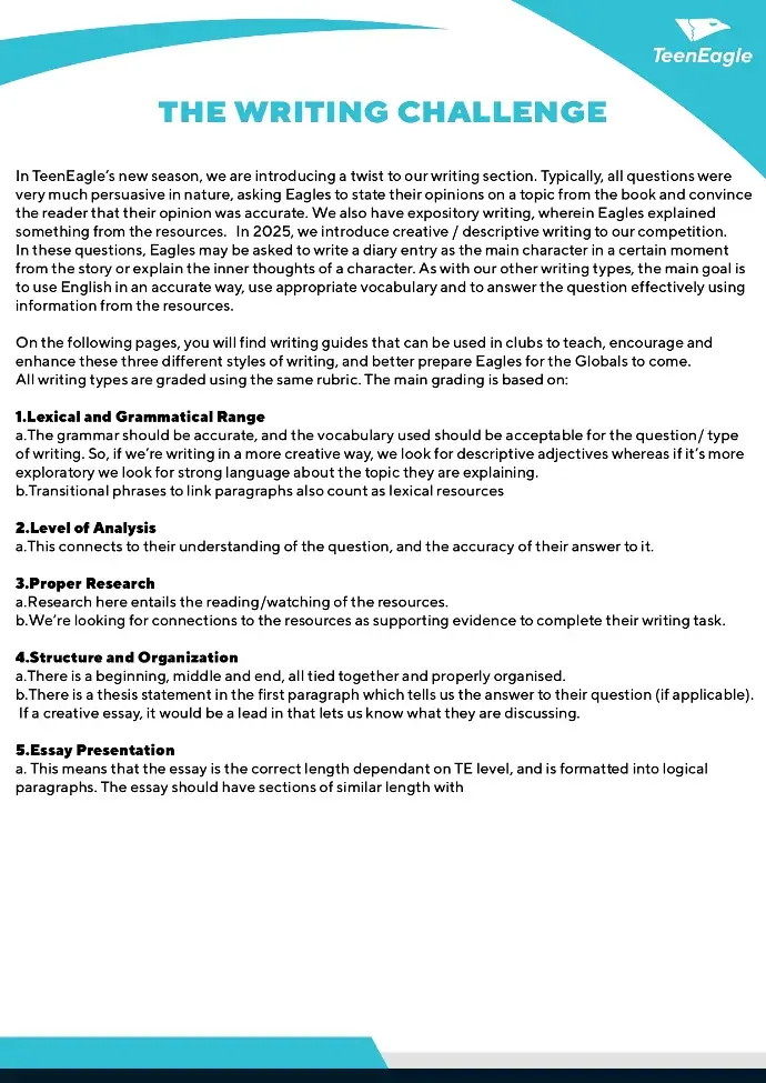What It Is: TeenEagle Clubs are structured, weekly sessions that utilise our connected plans and materials. Students engage in interactive lessons and exciting activities, and at the end of the course, they can take our online round exam.