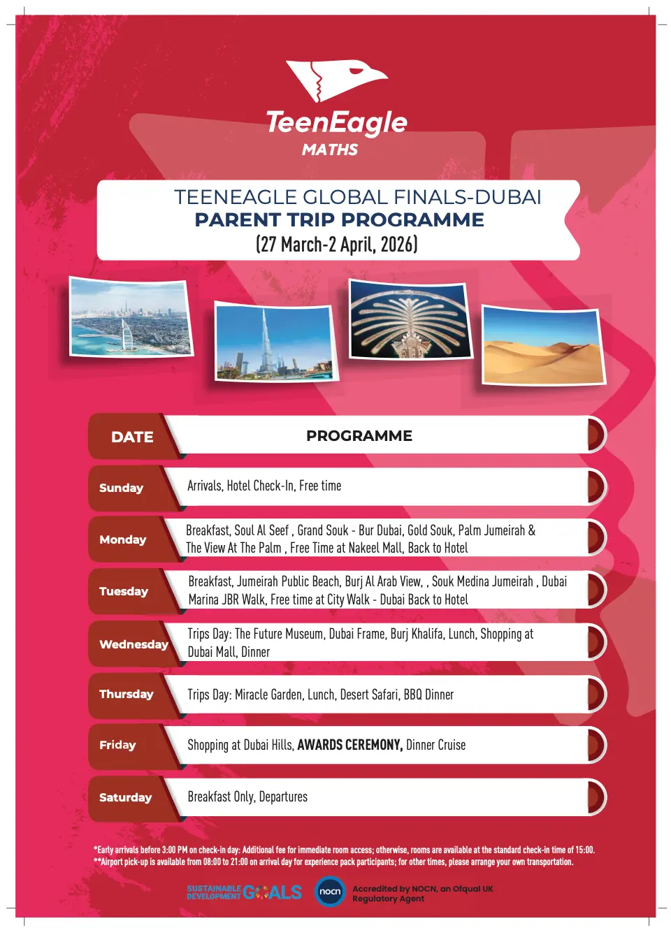 Join us in Dubai for the ultimate TeenEagle Global Finals competition! Experience the thrill of competing on an international stage while discovering the futuristic wonders and vibrant culture of Dubai. Don’t miss your chance to shine and create unforgettable memories in one of the world’s most iconic cities!