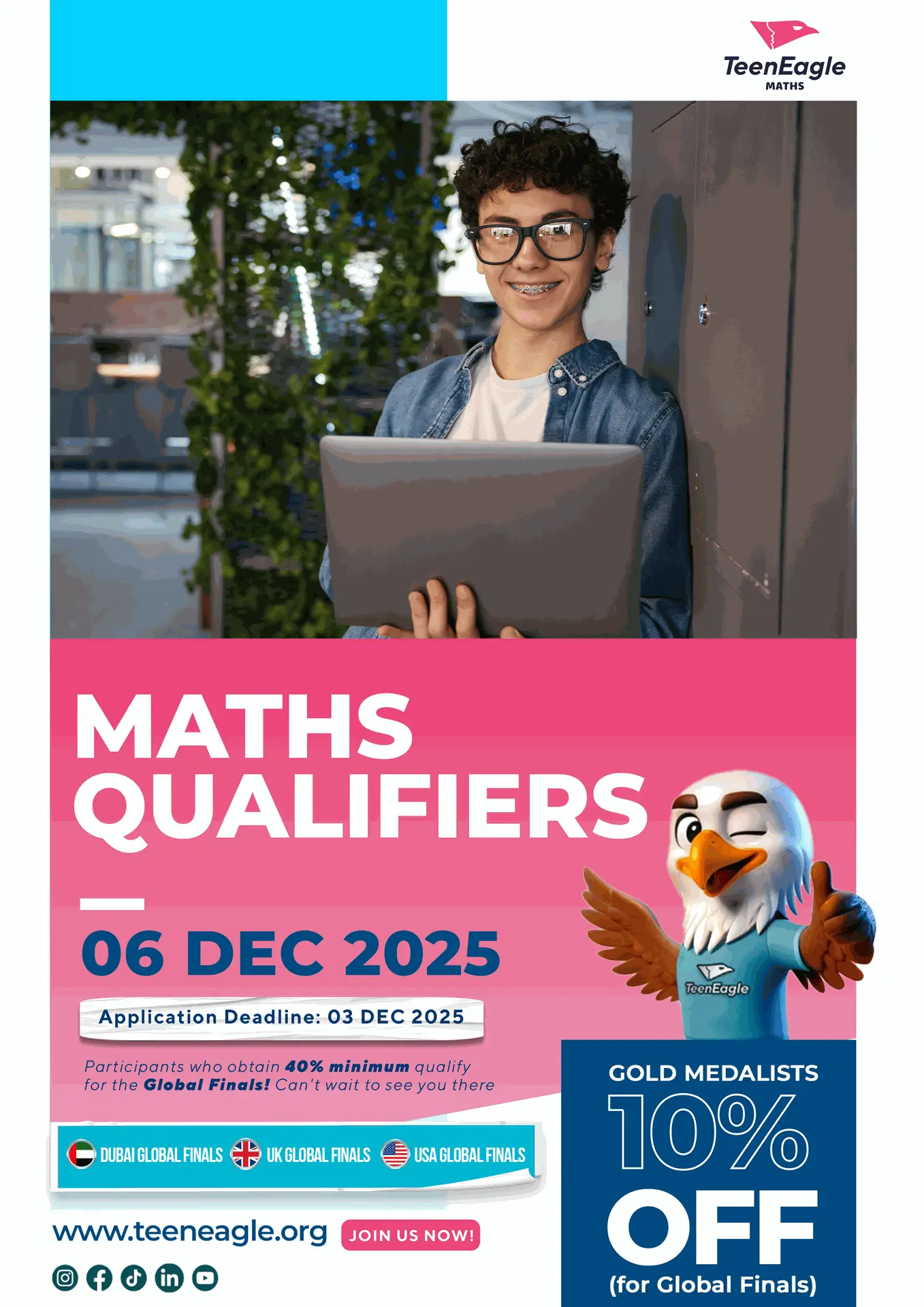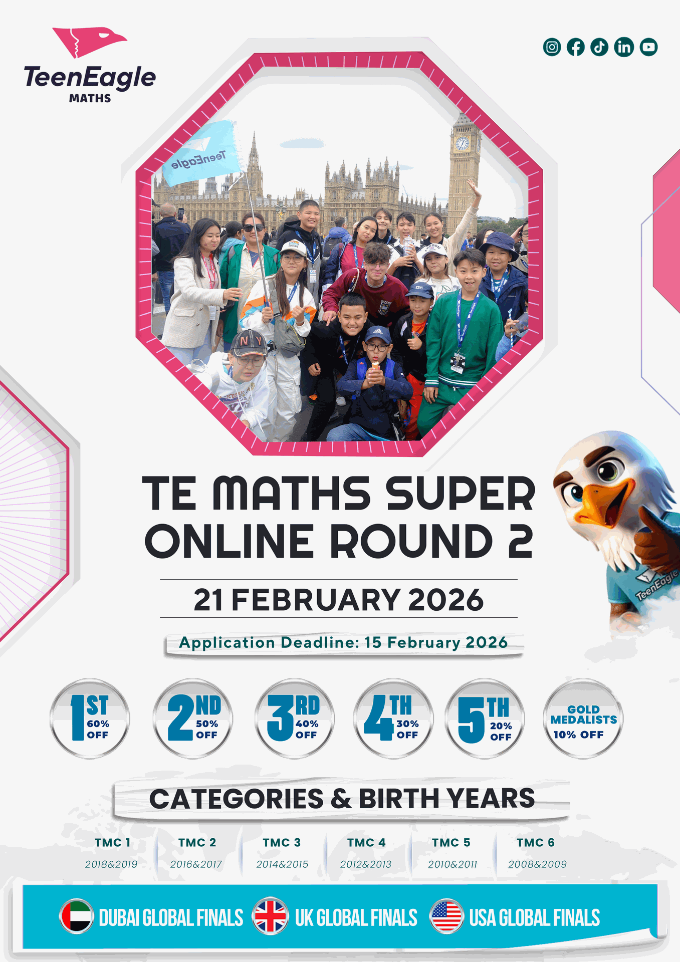 The top achievers at Super Online Rounds per category will receive discounts for the TeenEagle Maths Global Finals: