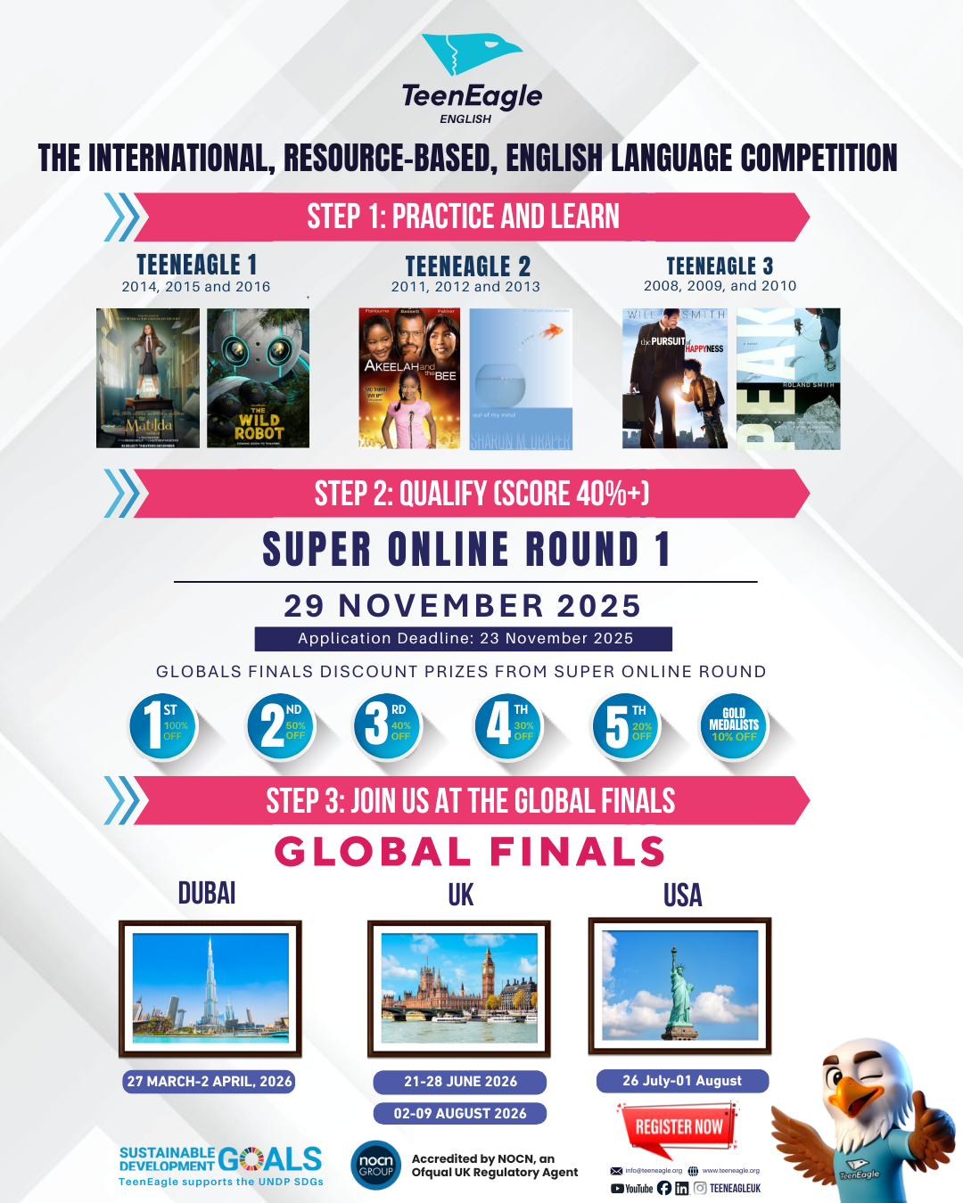 Take the first step towards an unforgettable global journey! The TeenEagle Online Round is your chance to showcase your knowledge, creativity, and problem-solving skills.