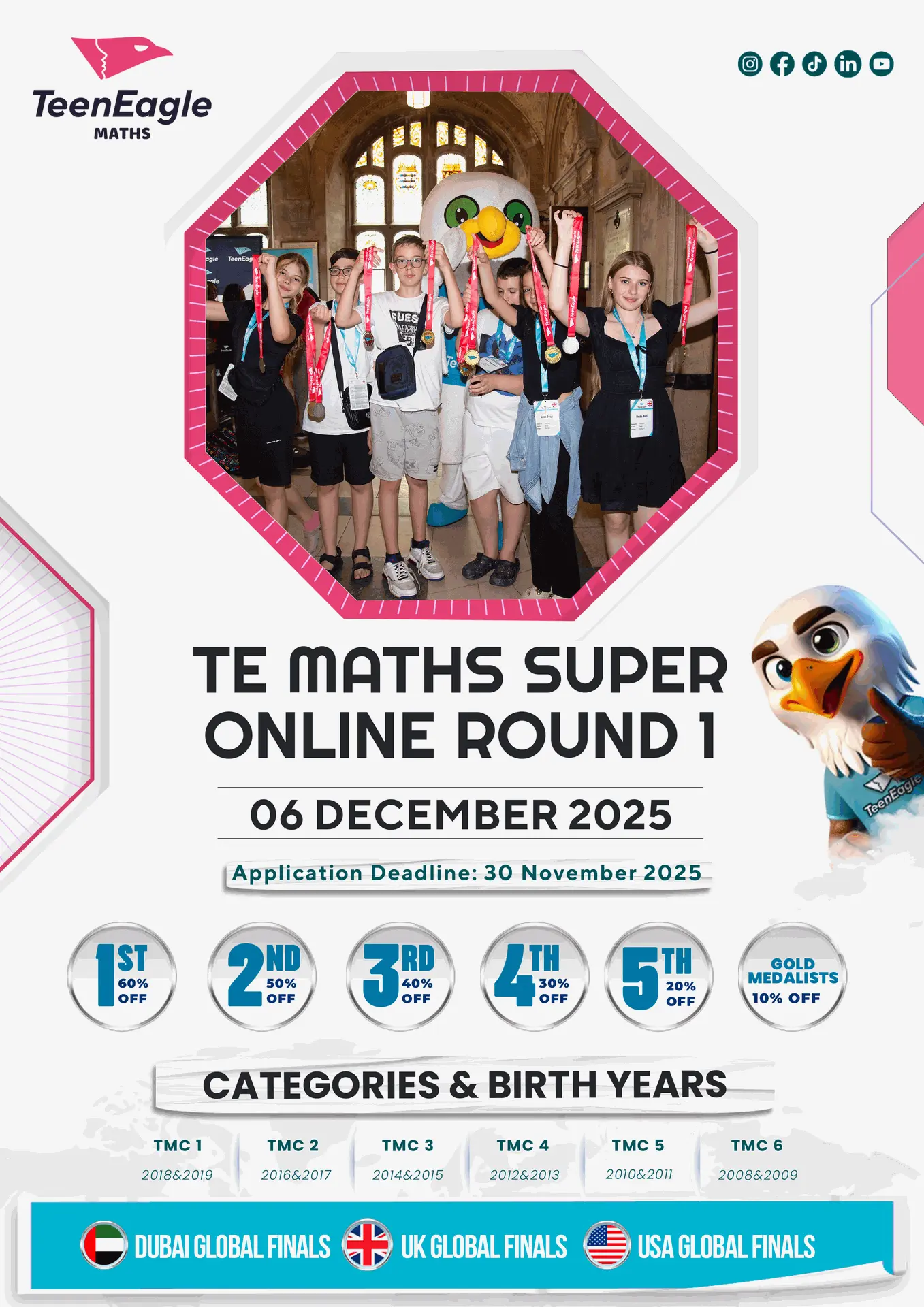 The top achievers at Super Online Rounds per category will receive discounts for the TeenEagle Maths Global Finals:
